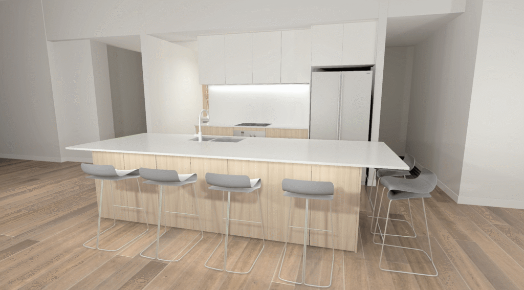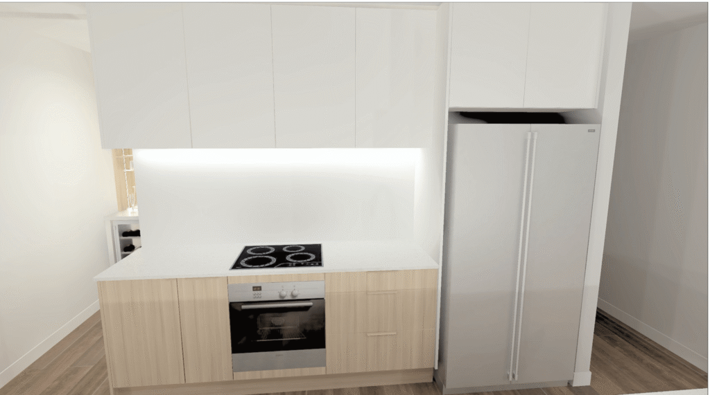 - Appliance package includes: Wine fridge, dishwasher, oven.